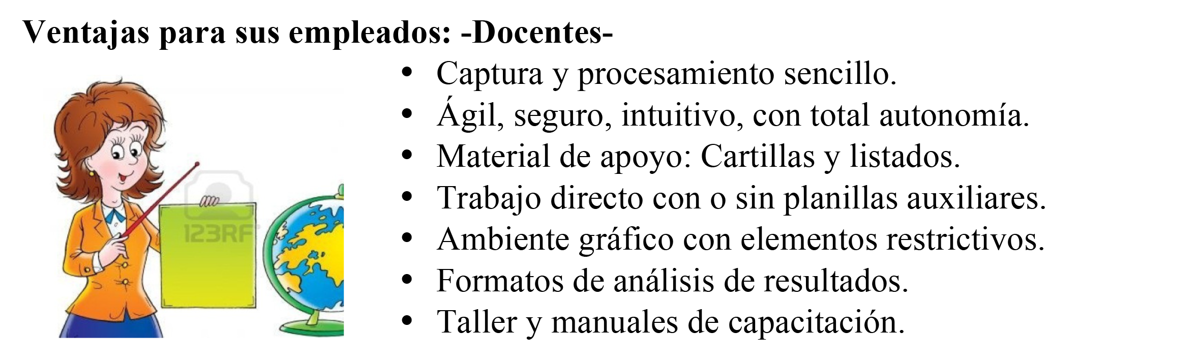 Hacemos reportes de evaluaciones con innovaciones académicas y tecnológicas; generando Informes ágiles, fáciles de obtener, amables para sus Clientes (Padres de Familia); y Empleados (Docentes – Coordinadores – Administrativos), Liberando tiempo y Procesos. ¡Todo esto con calidad y cumplimiento!